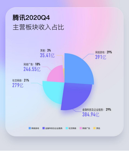 2020年四季度,微信与QQ用户继续保持增长,付费用户大幅增长。这也表明,后疫情时代,“宅经济”持续发展,“Z世代”为代表的年轻人群体数字内容消费习惯已经养成,对优质内容的需求进一步提升。