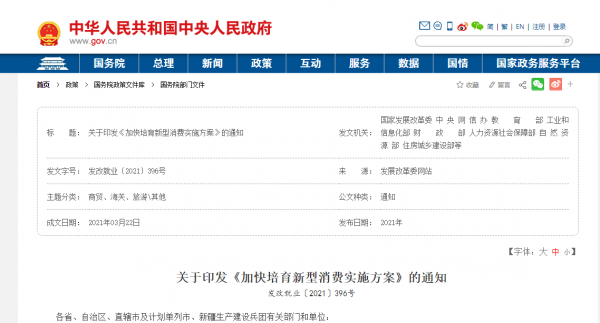 3月25日,发改委等多部门印发了《加快培育新型消费实施方案》。